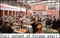 Feiyue stall take up maximum space among all the exhibitors with the area of 2000 m2. Dominant with the color of orange and alternate with sliver gray, the design of stall appear to be magnificent and unique, which fully represent the idea of the company: professional, technological and international.
