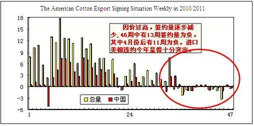 Sixth, the phenomenon of default and break the contract is serious. Influenced by the dramatically changing cotton price and the international cotton price was higher than domestic cotton price, the phenomenon of default and break the contract is serious this year, leading to USA cotton export signing quantity appear negative continuously. From March 18 th to June 16 th, 13 weeks were negative and there were 10 weeks in China.