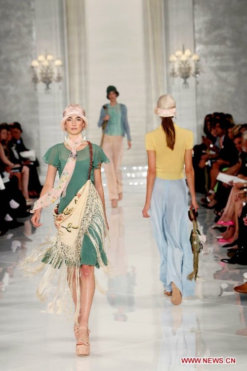 Models present creations at the Ralph Lauren show during the Spring 2012 Mercedes-Benz Fashion Week in New York, the United States, on Sept. 15, 2011.