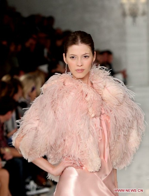 Models present creations at the Ralph Lauren show during the Spring 2012 Mercedes-Benz Fashion Week in New York, the United States, on Sept. 15, 2011.