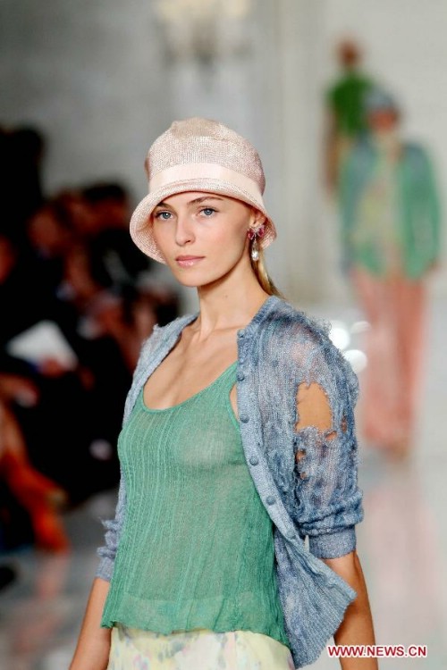 Models present creations at the Ralph Lauren show during the Spring 2012 Mercedes-Benz Fashion Week in New York, the United States, on Sept. 15, 2011.