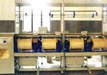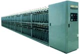The rewinder is used to switch the capacity of yarn package from a smaller one to a big one so that