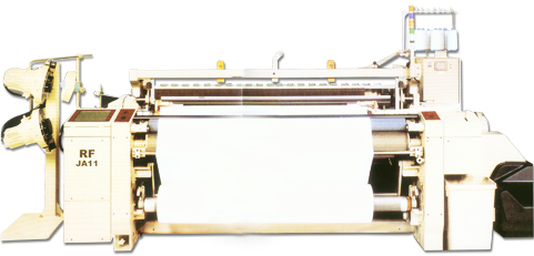 his machine adopts main and assistant nozzles,and reliable 4 shafts linkage at both sides,6shafts linkage,positive cam shedding,by which the types of the fabric is increased,as well as electronic letting-off,electronic picking,electronic taking-up(selective),frequency conversion slow-speed inching system with the ability of seeking waft automatically and easy-operation.