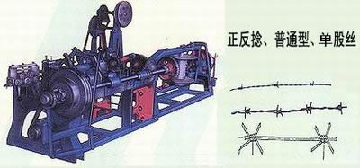 The machine is mainly suitable for producing all kinds of stocks thorn steel wire, the materials of products should accord with GB/T343-94 standard requirement< the common usage of hot-dipped galvanized low carbon steel wire >. The products are widely used in national defense, railway, highway, agriculture forming etc profession. CS-A type barbed steel wire is connected by circle wire and received wire and has four silk plates. All parts work coordinately, move steady, operate rumble and reliable. It is the only equipment of producing barbed steel wire at home at present.