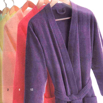 Features: 1) 100% cotton made by terry or velour 2) Shawl collar or kimono style 3) Various size and weight available