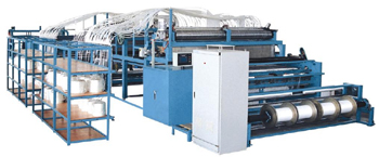 Double-short-cut felt stitch-bonding machine is further development of short-cut felt stitch-bonding machine.With two short-cut devices and a fabric let-off device cooperate with the host machine,we can get “sandwich” type of fabric,two layers of short-cut glass fiber with one layer nonwoven insertion,this unusual strcture makes the fabric more stable, so it can be used to a wide territory.