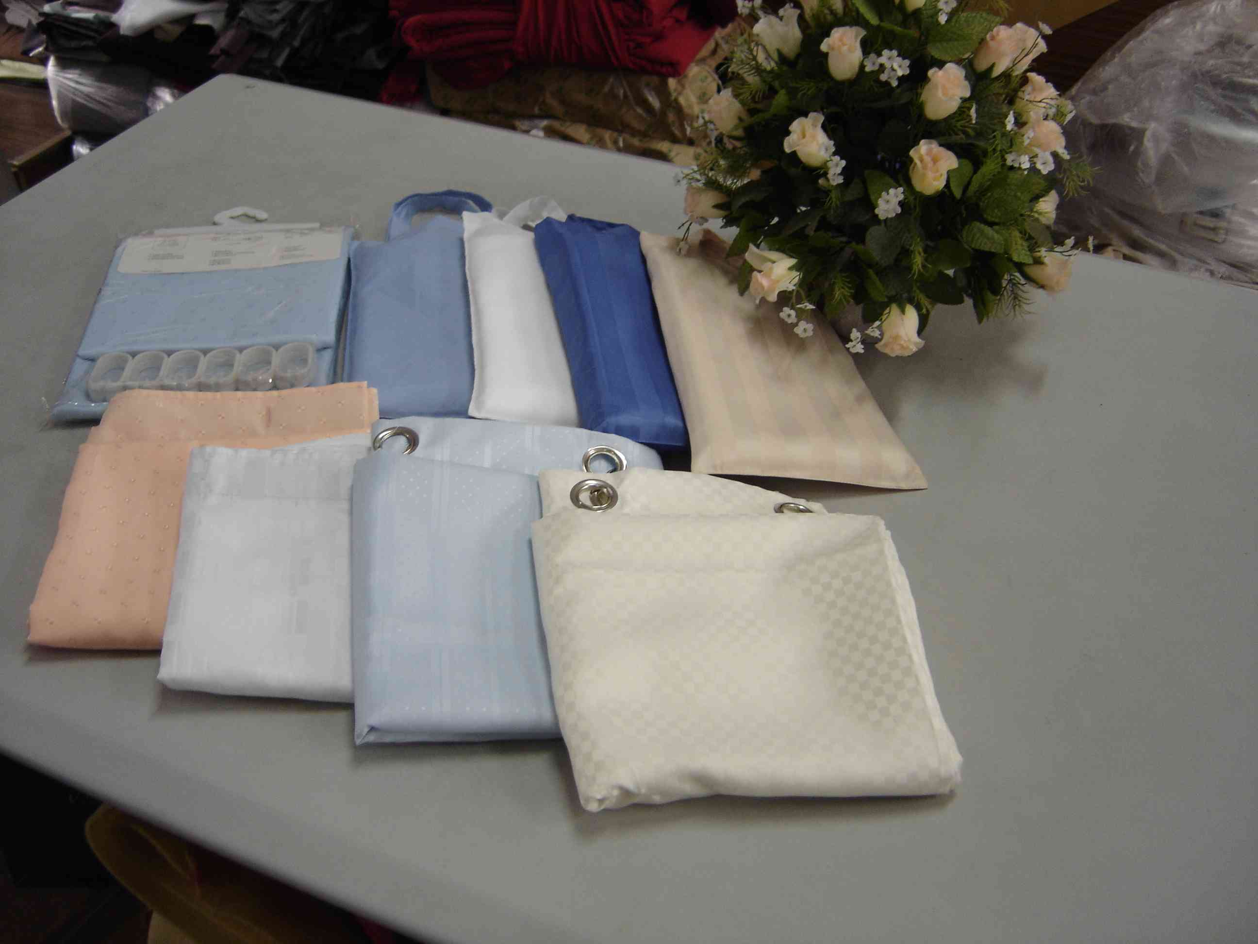 Features: 1) Material: 100% polyester 2) Width: 72" 3) Water repellent 4) Customers' designs available Packing: Perfect plastic hanger bag or polyester bag, plus 12 plastic rings