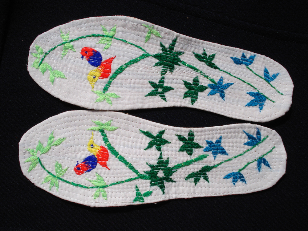 This pair of insole is embroidered with the picture pattern of birds resting on green bamboo which mean luck and blessing in Chinese folk-custom. Craft ladies work countless hours to make each wonderful insole. All works are done by hand. It suits well for ladies in spring and autumn. [Size]: total length 8.7", width 3.0"(a fullest points) [Material]: cotton fabric [Craft]: 6 layers of cotton fabric be adhibited together by natural amylum. After embroidering by hand, it is fixed by white thread of short needle-interval. [Function]: You can feel comfortable with it in your shoes to absorb sweat and smell. It is very soft and light to make your feet warm but not hot. It can also protect your feet and shoes. [Maintaining]: Put it under sunshine after one day's using. It can washed by hand and machine. It will not be damaged by brush. The retail price is USD8.00/pair. We ship via China Post Airmail. 1pair=shipping&handling of $6.00 2 pair=second item ships FREE. If you are interested, please feel free to email me.
