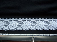 ELASTIC LACE, 93%NYLON,7%SPANDEX. We produce and offer all kinds of Lace , Trimming, garment accessory as following: Raschel lace, jacquard lace, textronic lace, knitting fabric,stretch lace, rigid lace , nylon lace , spandex lace , wedding dress lace, more than 2000 patterns are available for buyers' choosing. Also buyers' patterns are acceptable for our production Do not hesitate to send us inquiry , we supply good quality with competitive price .