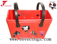 LOVE Bag Features: Material:PCCR softer Production Way:One Time Finish One Time Injection Main Features: 1.Anti-bacterien & Anti-Static 2.Green Product,Non-contaminated 3.Washable & Easy-Washing with soap or water 4. Breathable & Stronger & Endurable for use 5.Water Proof 6.Bigger Size more suitable for shopping and buying food. Suit for : 1. The people which is going to relax at the seaside; 2. The shopping girl or lady; 3. Housewives : for them to buy the food and vegetable; 4. Super Market & Store promoption gift to housewives. If you have any question please send email to : loveclogs@jiaxingwear.com