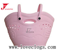 LOVE Bag Features: Material:PCCR softer Production Way:One Time Finish One Time Injection Main Features: 1.Anti-bacterien & Anti-Static 2.Green Product,Non-contaminated 3.Washable & Easy-Washing with soap or water 4. Breathable & Stronger & Endurable for use 5.Water Proof 6.Bigger Size more suitable for shopping and buying food. Suit for : 1. The people which is going to relax at the seaside; 2. The shopping girl or lady; 3. Housewives : for them to buy the food and vegetable; 4. Super Market & Store promoption gift to housewives. If you have any question please send email to : loveclogs@jiaxingwear.com