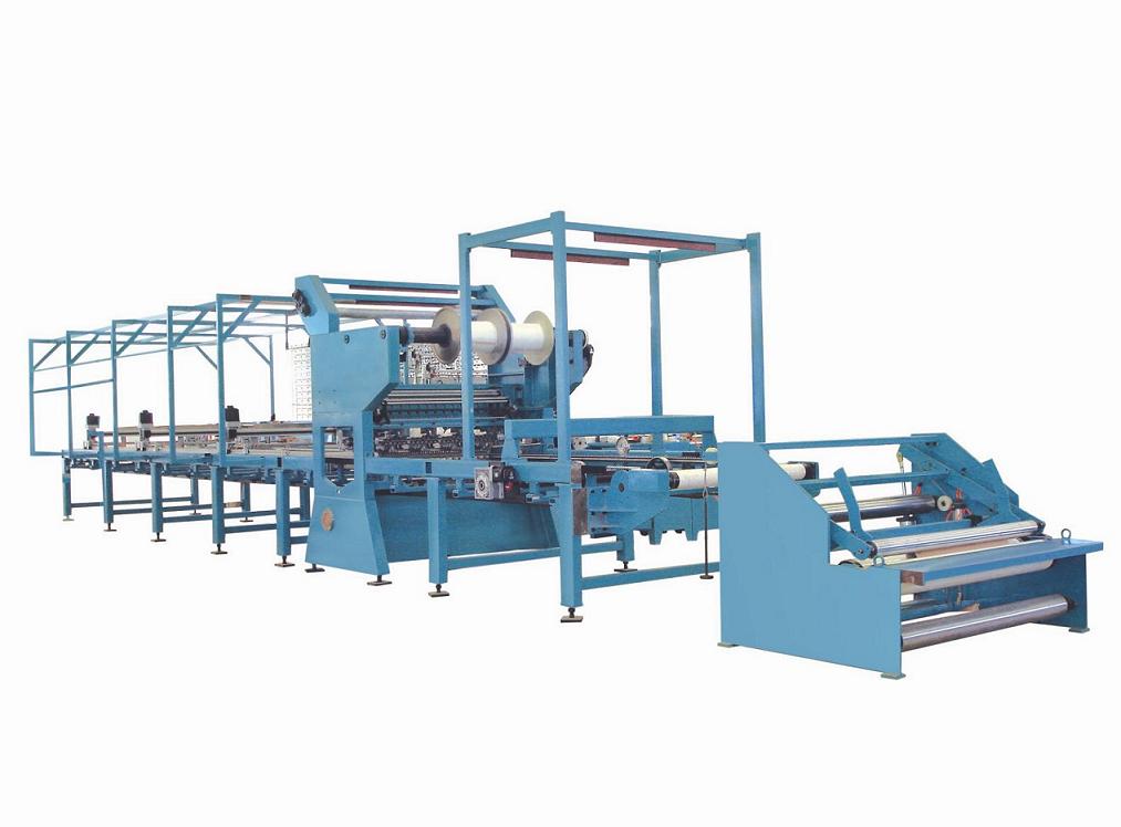 This machine has more than 3 weft wagons in direction from -20°to +20°and one set high speed warp knitting machine,the different layer different angle,be possible with choppers or PP web composite ,all layers are together delivered to warp knitting machine by a chain conveyor device,are knitted and taken-up to be roller fabric,all the machine are full automaticly and controlled by servmotor.