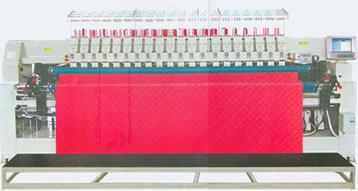 Features: 1) Combines quilting and embroidering into one machine 2) Every head can be chosen to quilt and embroider 3) Automatic tensioning system 4) Unlimited and continued quilting and embroidering in Taxis 5) Moves on straight rails 6) Panasonic servo motor driving in X and Y axis 7) Auto-oil device can be equipped 8) Auto-cutting device can be installed, 10 inches color LCD monitor, tracing designs 9) Easy to operate Specification 1) Speed: 250 - 800rpm 2) Needle / color: 3 3) Stitch length: 0.1 - 12.7mm 4) Stitch memory: 120,000 5) Design memory: 100 6) Rated power: 4.5kW 7) Power supply: 3-phase 220 / 380V 8) Machine weight: 3,500kg
