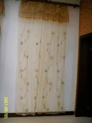 Ready-made curtain(P/D rope embroidery) -Material:100% polyester -specification:145*240cm,sure we can make as per customers' requirement. -packing:PVC bag(insert+cardborad)