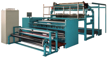 RFD short-cut felt stitch bonding machine is used to processing and producing glass fiber fabric. The fabric is used for sports equipment, automotive body and ship body. The glass fiber from creel stand is cut by short-cut device behind stitch bonding machine. Length of cutting can set in advance. The glass fiber after cutting is transferred to stitch bonding of host machine through conveyer belt. Slitting device with machine cut finished fabric according to different working widths.