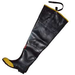 Hip Wader: with steel toe made from natural rubber with cotton knitting lining, calender sole, adjustable strap hung to waist belt..
