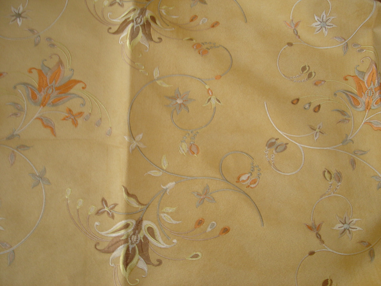 Material:Suede embroidery fabric for sofa fabric and curtains Width:150m Ground fabric material:100% Polyester Packing:roll packing with strong tub