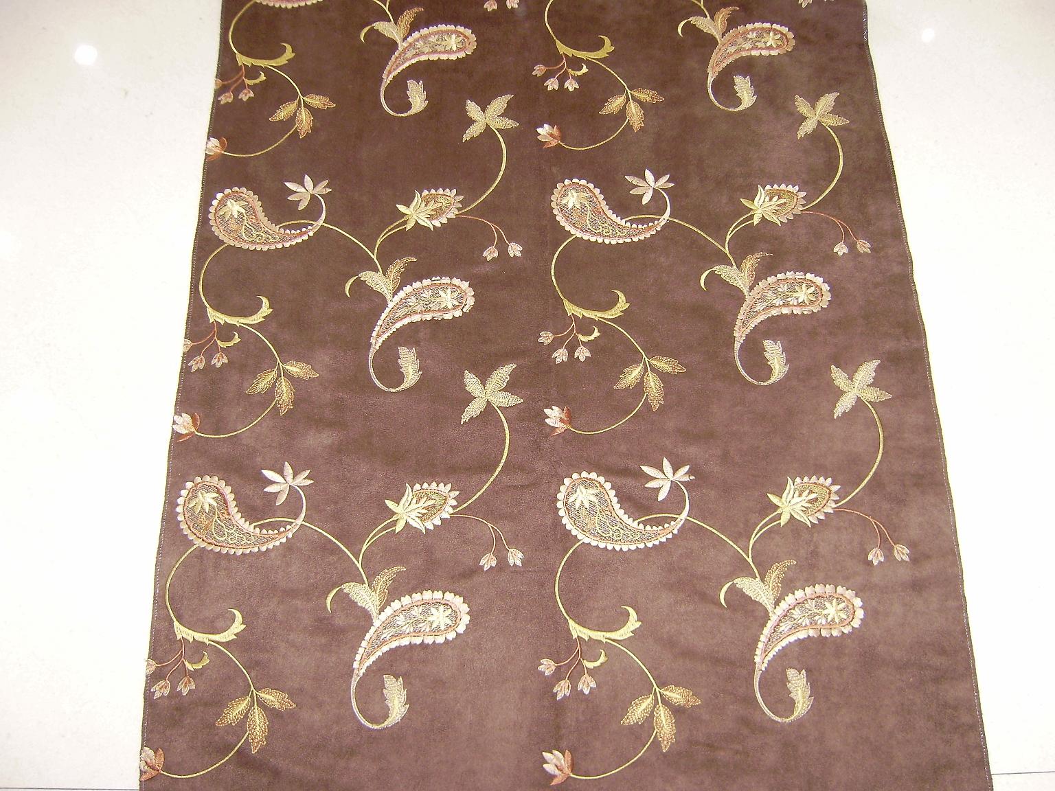 -Suede embroidery fabric -Material: 100% polyester - Specification:150cm with black out and without black out . -Packing:150cm roll packing with paper tube