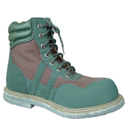 wading shoes, consisting of combination upper of leather and canvas, nylon lace, anti-rust buckle for lace, felt outsole,