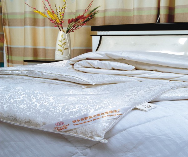 Outer Shell: 100% jacquard silk white color Specification: 180*200cm,or according to customer's size. Fillings:1.5kg 100%mulberry silk