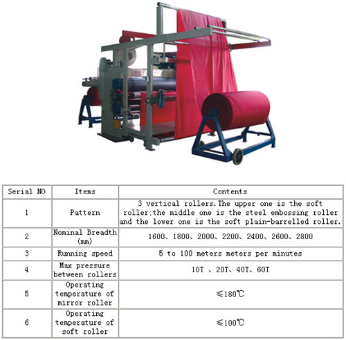 The product is used to emboss,press and press trademark(Among them,it mainly based on the embossing of lapping cloth).It is also used for the super ginning,one or double sided riffing,embossing and calendering ;It is used for the riffing and embossing of aluminum foil,aluminium plate,wallpaper,wall cloth and plastics,etc in lght industries.