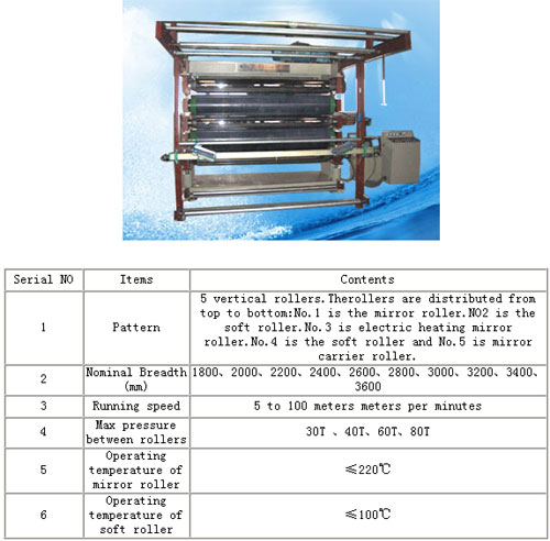 The product is used for the calendering of pure cotton fabrics,chemical fiber,bast fibre,wool spinning and blended fabrics;It is also used for the roll compacting of building materials,plastic packing materials and paper. If furnished with schreinering and embossing roller,It can also be used for the afterfinish of schreinering an embossing.