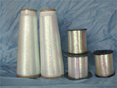 Electric aluminum(silver) through vacuum is plated on polyester film and then dye on polyester film, thus the products above are produced. Their bright color and metallic luster have improved their decorative effect and extra value.The products are suitable for further weaving of different kinds of products.
