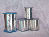 Electric aluminum(silver) through vacuum is plated on polyester film and then dye on polyester film, thus the products above are produced. Their bright color and metallic luster have improved their decorative effect and extra value.The products are suitable for further weaving of different kinds of products.